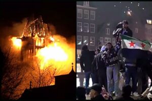 Historiallinen kirkko, Pierre Cuypersin suunnittelema Vondelkerk, tuhoutui liekeissä samaan aikaan kun poliisi joutui maahanmuuttajajengien hyökkäysten...