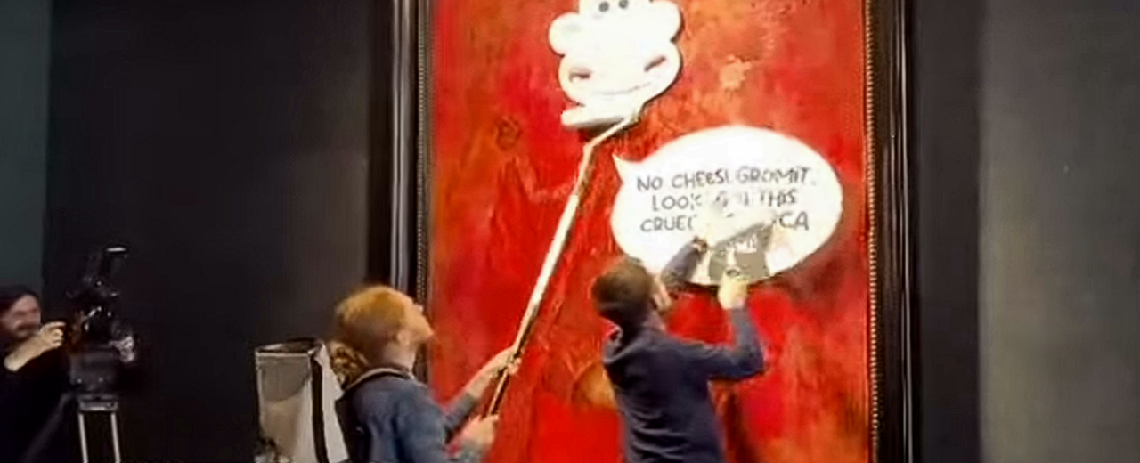 Kuningas Charlesin vastikään julkistettu virallinen muotokuva joutui vandalismin kohteeksi lontoolaisessa galleriassa. Eläinsuojelujärjestö Animal Rising julkaisi iskusta videon. Siinä aktivistit liimaavat Charlesin kasvojen päälle tarran, joka esittää muovailuvaha-animaatioelokuvissa esiintynyttä Wallace-hahmoa. Tauluun liimatussa puhekuplassa suurena juuston ystävänä tunnettu Wallace sanoo: ”Ei juustoa, Gromit! Katso kaikkea tätä julmuutta RSPCA-maatiloilla.” Aktivistien mukaan eläimiä kohdellaan huonosti kymmenillä maatiloilla, vaikka tilat … Jatka artikkelin Eläinsuojelujärjestön tarra-isku: Kuningas Charlesin muotokuvaan liimattiin juustofani Wallacen pää lukemista