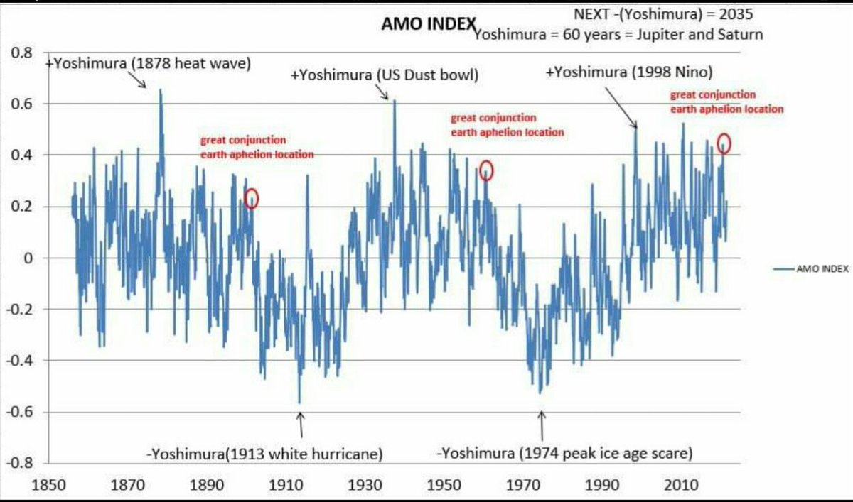 Juuri näin. Ja isojen syklien sisällä tapahtuu myös pieniä syklejä johtuen siitä että pyörimme aurinkokunnassamme ja muutkin planeetat siinä pyörivät omilla radoillaan suhteessa aurinkoon. Näistä johtuen olemme eläneet 70-luvulta alkaen lämpenevää sykliä jonka pituus n. 66 vuotta. Olemme nyt siirtyneet viilenevään jaksoon ja seuraava taite tässä syklissä on ennustettavissa linkin kuvasta.
