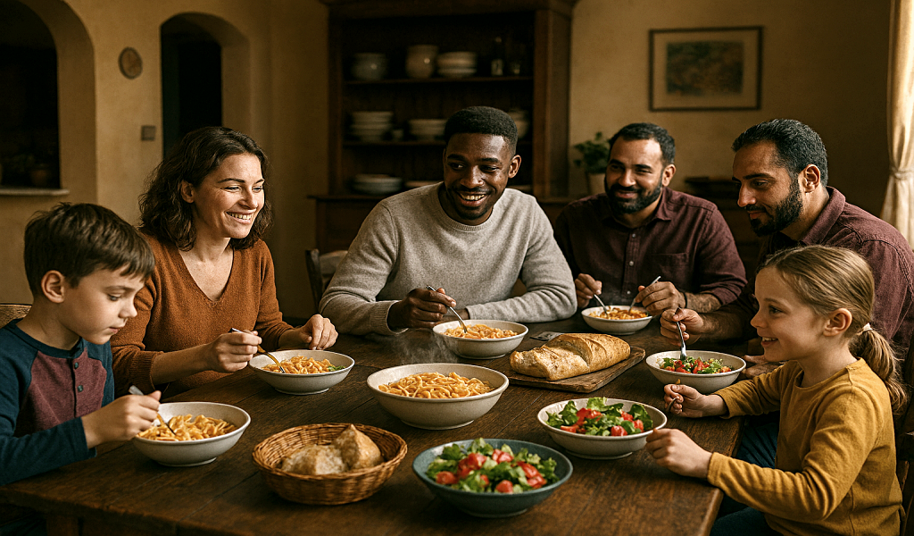 tekoälykuva, AI, muslimit, islam, somalit, maahanmuutto, pakolainen, turvapaikanhakija, monikulttuuri, kulttuurin rikastus, väestönvaihto, suvakki, Eurooppa, laittomat maahanmuuttajat, laittomat siirtolaiset, maahantunkeutujat, rinnakkaisyhteiskunta, neekerit, afrikkalaiset, monikulttuuri, yksinhuoltaja, lapset, perhe, majoitus