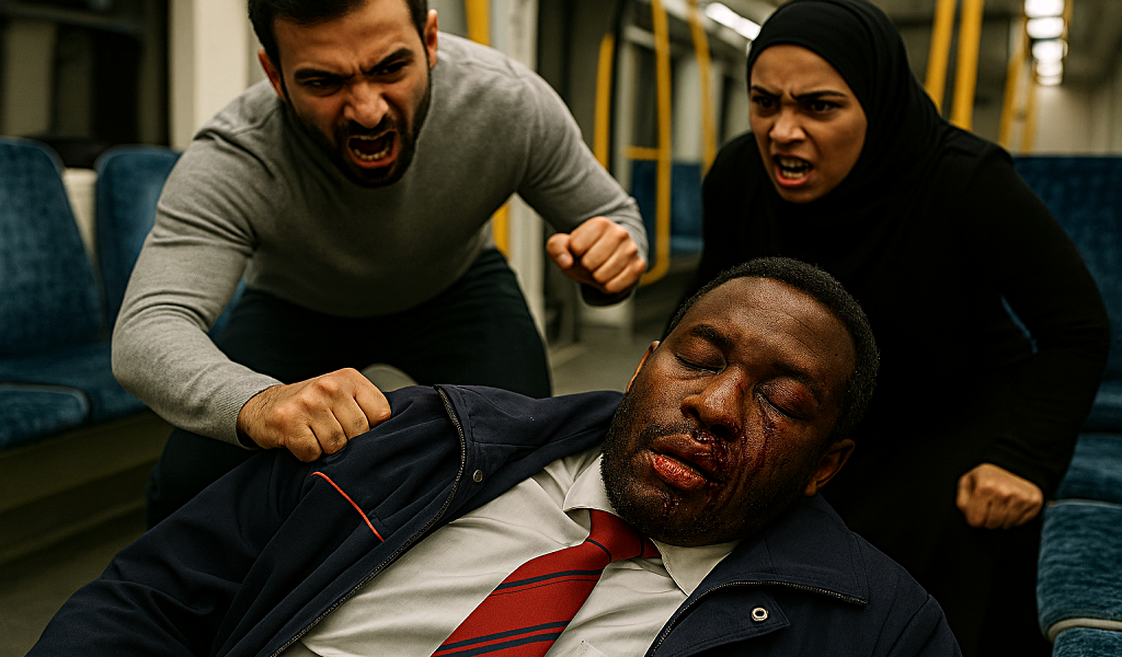 tekoälykuva, AI, burka, muslimit, islam, neekerit, maahanmuutto, pakolainen, turvapaikanhakija, monikulttuuri, kulttuurin rikastus, väestönvaihto, EU, Eurooppa, afrikkalaiset, rikollisuus, väkivalta, pahoinpitely, julkinen liikenne, juna, rautatie, bussi, metro, rasismi