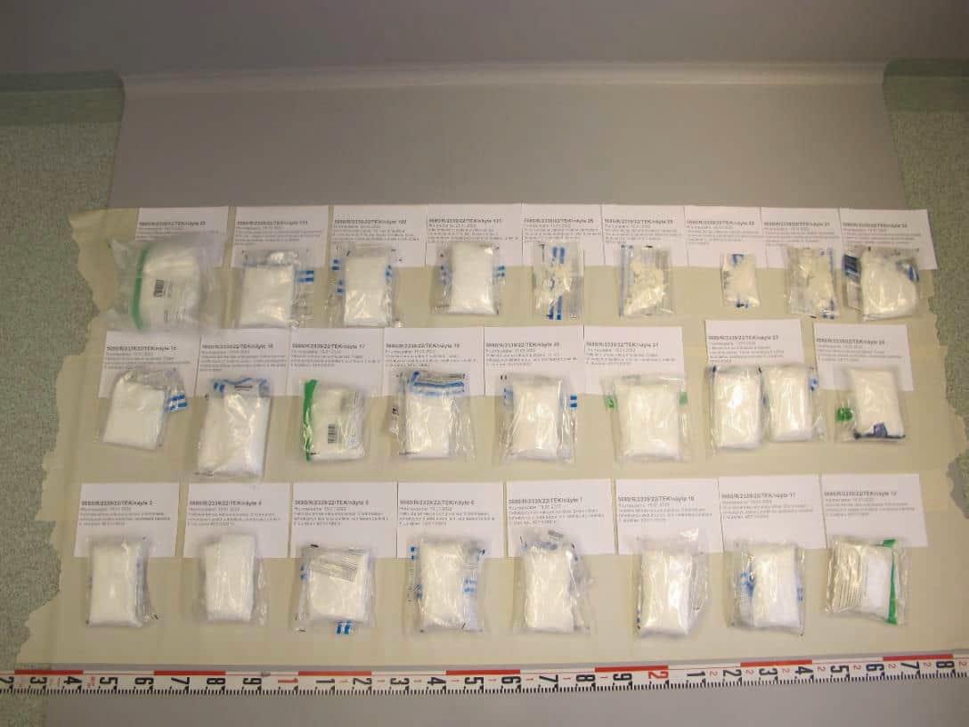 Poliisin 2022 etsinnällä takavarikoimia huumausaineita, 23 kilogrammaa amfetamiinia.