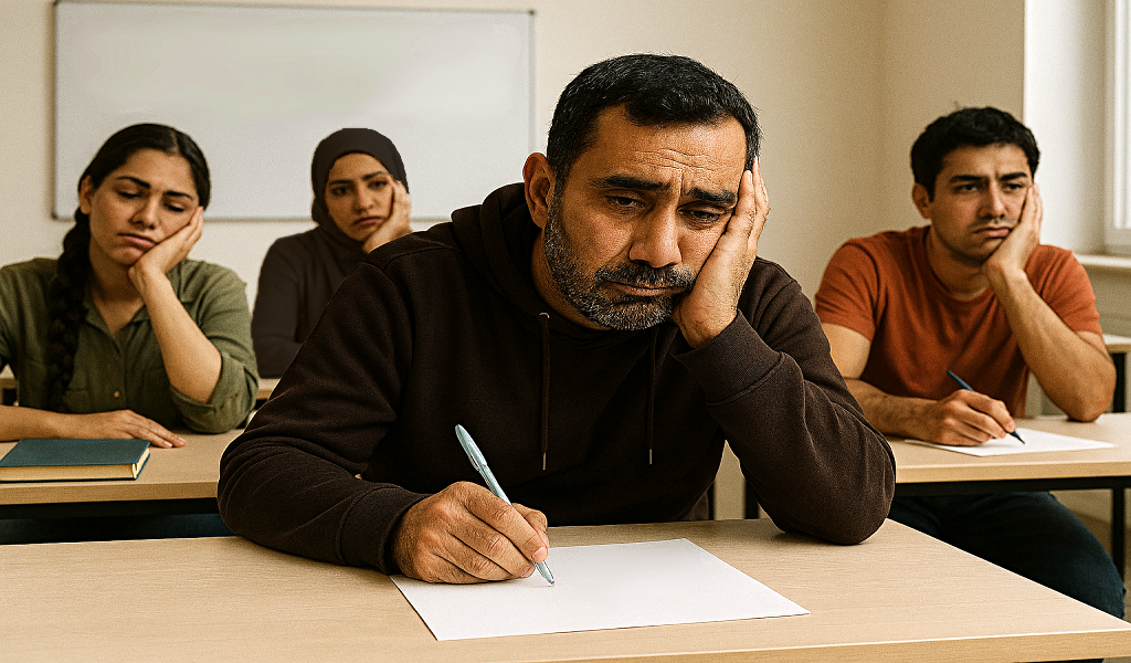 AI, tekoälykuva, maahanmuuttaja, S2-opiskelijat, kielitaidottomat, kotouttaminen, lukutaidottomat, turvapaikanhakijat, opiskelu, koulu, halpatyövoima, ammattitaidottomat, matut, ulkomaalaistaustaiset, kielikurssi,
