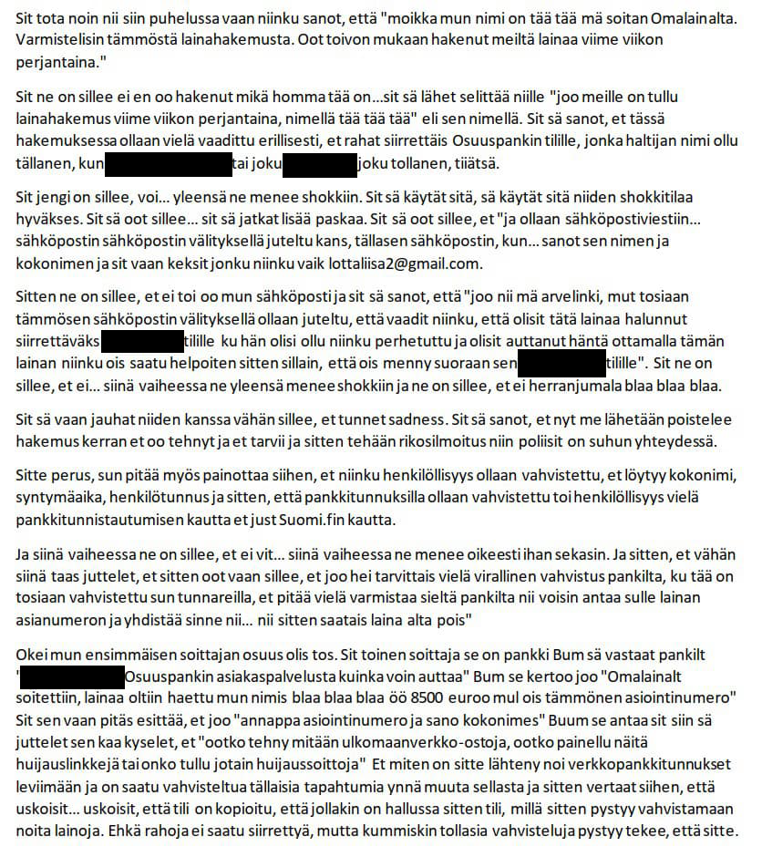 Poliisin kuva: Litterointi puhetallenteesta.