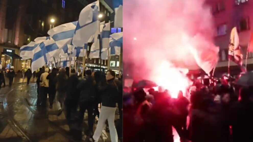 Iltalehti: ”Äärioikeisto marssi Helsingin keskustassa – Turistit hämmennyksissä, soihdut roihusivat”. Iltalehti nimeää Sinimustan Liikkeen järjestämän kulkueen ”Uusnatsien Suomi Herää -kulkueeksi”, jossa Ylen mukaan on satoja naamioituneita osallistujia.
