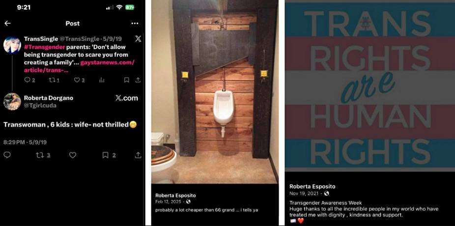 Facebookissa Dorgan julkaisi toistuvasti kuvia kuntosalilta ja moottoripyöränsä kanssa. Hän kommentoi avoimesti transsukupuolisuuttaan ja julkaisi muun muassa kuvan giljotiinista pisuaarin yläpuolella kirjoittaen: “varmaan paljon halvempi kuin 66 tonnia… sanonpahan vaan.” Toisessa kommentissa hän viittasi perhe-elämään: “transnainen, 6 lasta: vaimo – ei kovin innoissaan.”