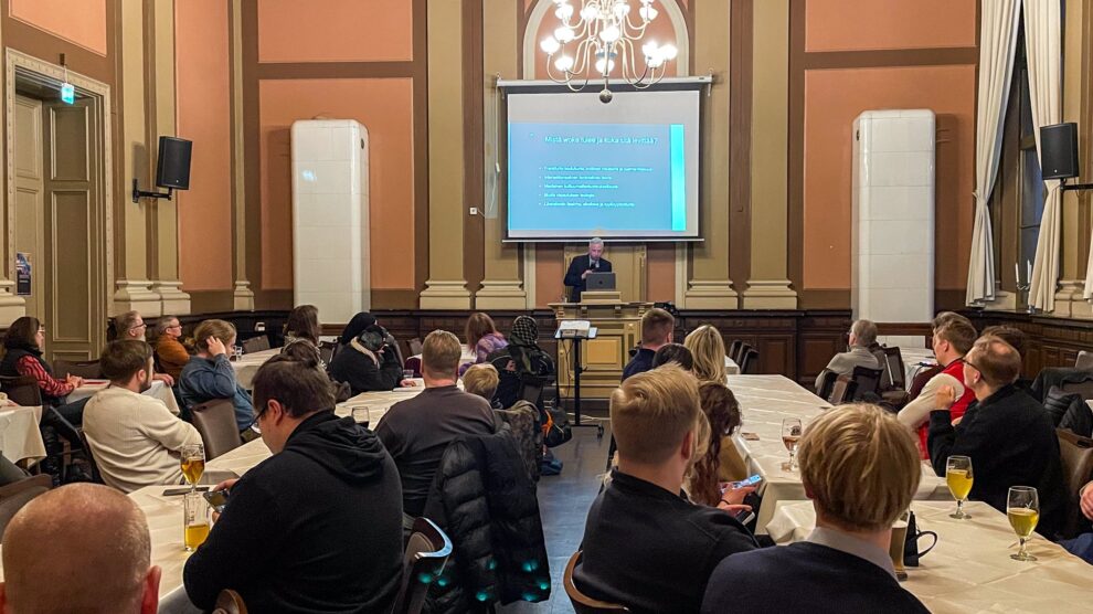 Varsinais-Suomen kokoomusnuorten puheenjohtaja Jimi Mahosen mukaan kaikille avoimessa tapahtumassa ravintola Koulussa oli paikalla noin 60 henkeä.